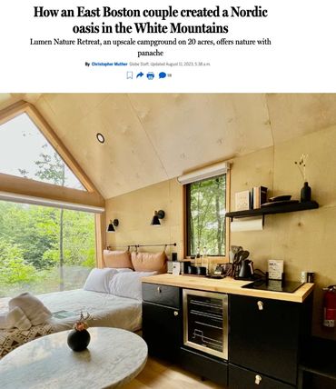 The co-founders of Lumen Nature Retreat leveraged earned media strategies to build greater awareness of their tiny cabin and tented retreat during the cooler, winter season -- a time when similar properties are often closed for the year. The beauty and expanse of Lumen Nature Retreat made it the perfect home to host NH Chronicle the week of February 8-12, 2024. Lumen Nature Retreat was also spotlighted in BOSTON Magazine's July 2024 cover story on glamping. Lumen Nature Retreat was also awarded the "BEST of GLAMPING" award (New Hampshire) in 2024.