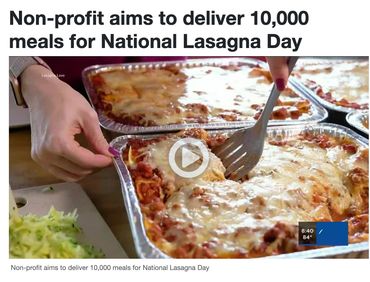 KMOV-4: Lasagna Love set a goal in 2023 to deliver 10,000 lasagnas, enlist 1,000 new volunteers and raise $100,000 on National Lasagna Day. The organization made 2023 its third, consecutive record-breaking year.